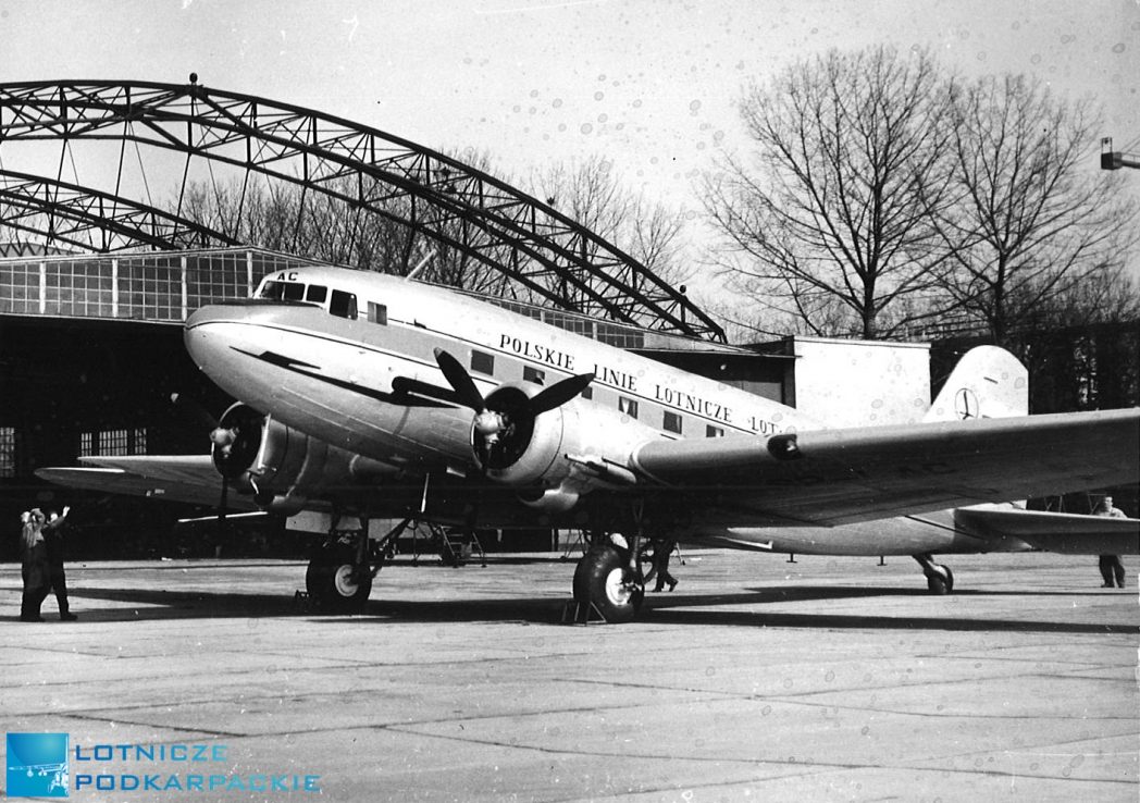 PLL Lot – oddział Rzeszów. Pierwsza grupa pracowników PLL Lot w Rzeszowie. Rok – 1947. Samolot (…) lat 50. obsługujący linię Rzeszów – Warszawa. DC-3
